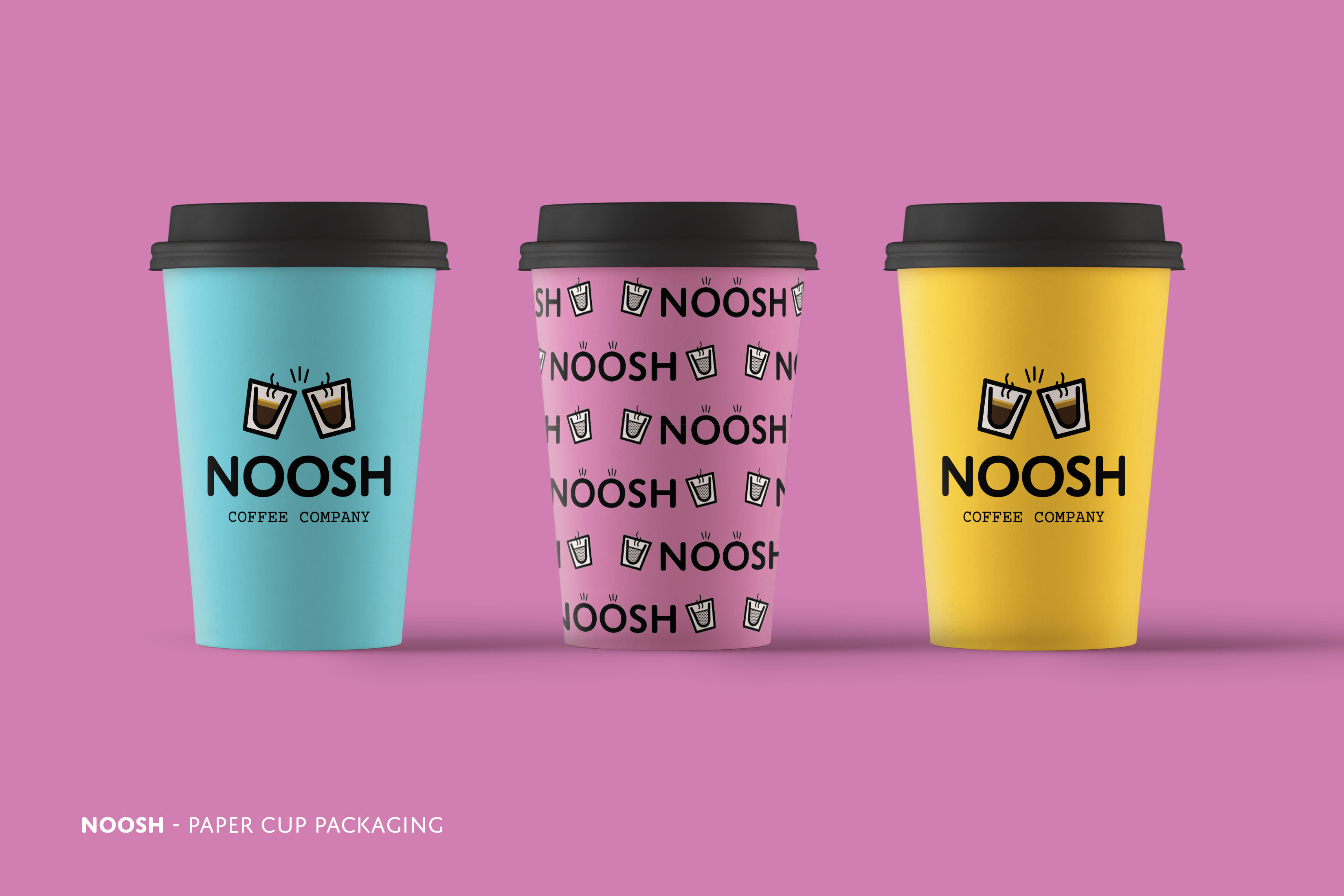 The word Noosh means cheers in Farsi. This brand is based on this word which is why the bold and bright colours are used to compliment the fun and excitement in the meaning. Cheers to coffee!